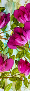 Using alcohol inks on mediums such as ceramic tile, glass, and yupo paper, Angie endeavors to capture the beauty and complexity of flowers. Through her art, she seeks to communicate the strength and hopeful spirit required to overcome challenges.