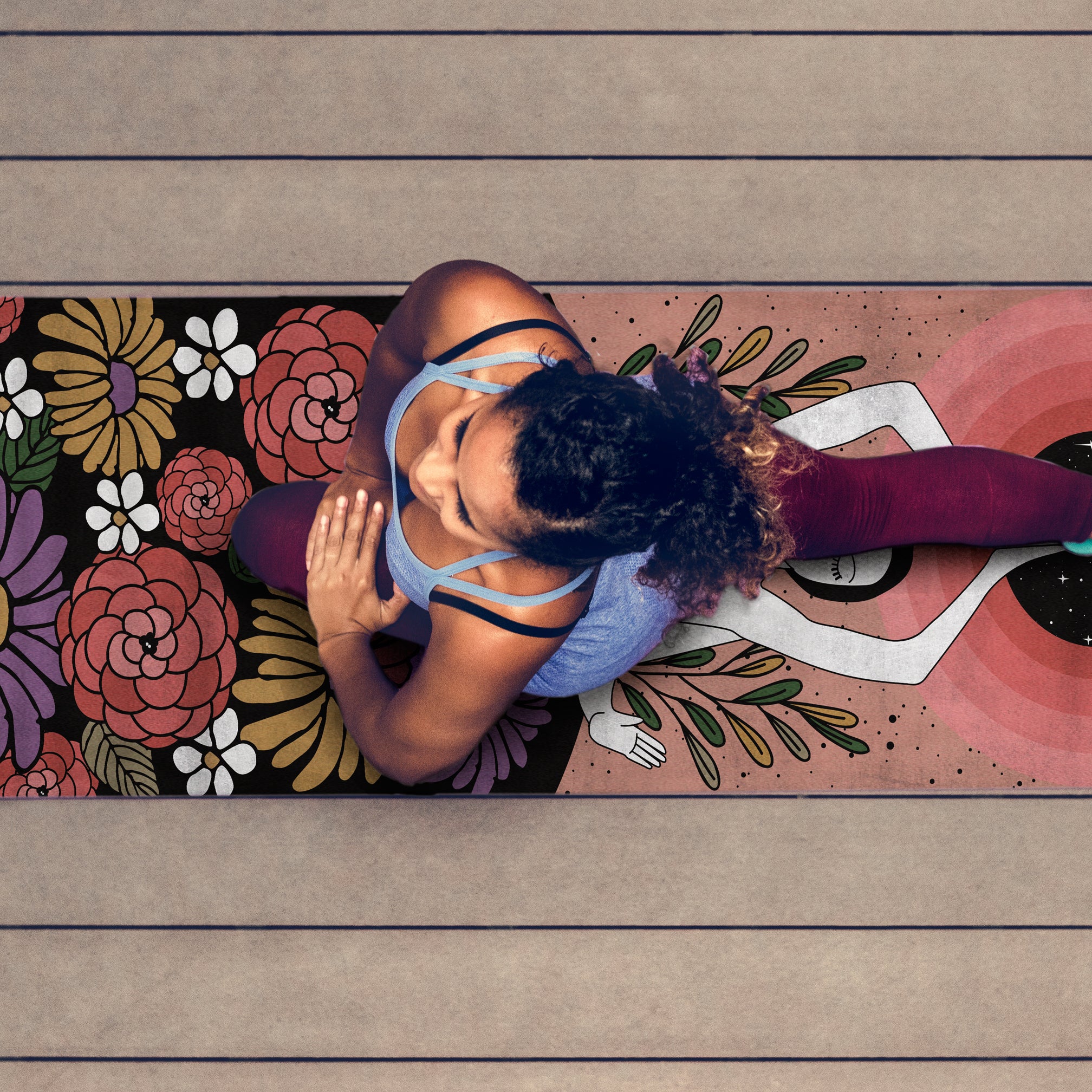 - 5 mm thick — thicker than most mats to provide extra support for knees, wrists, and hips!